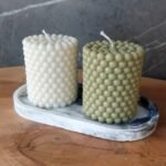 Box con 2 velas INDI + bandeja de yeso marmolada blanco y negro.