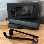 Ambas piezas vienen en un pack negro súper minimalista, ideal para regalar o para quienes aman cuidar cada detalle de sus velas.