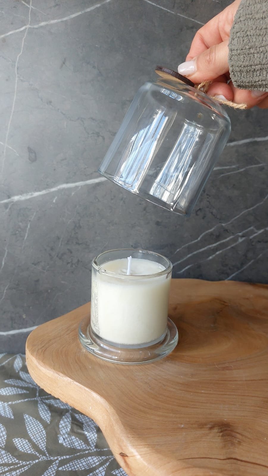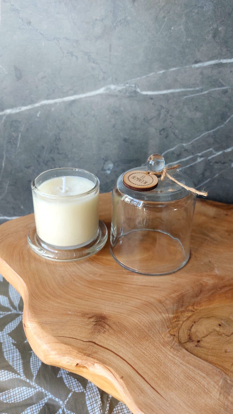 Una pieza que combina elegancia y calidez. Esta vela viene en un delicado vaso con cúpula de vidrio, diseñada para proteger su aroma y resaltar su presencia como objeto decorativo. Al encenderla, transforma cualquier espacio en un rincón acogedor. Perfecta para regalar o sumar un toque sofisticado a tu hogar. Hecha a mano con cera de soja y fragancias seleccionadas.