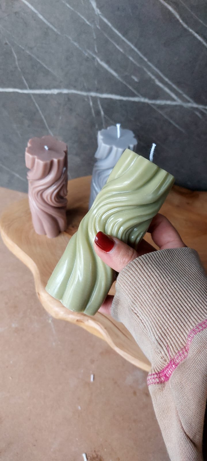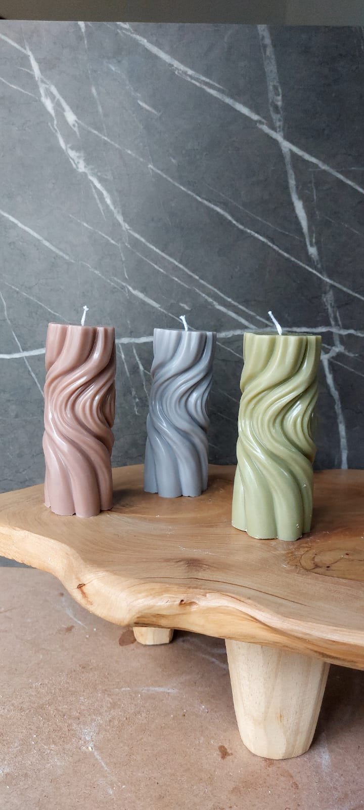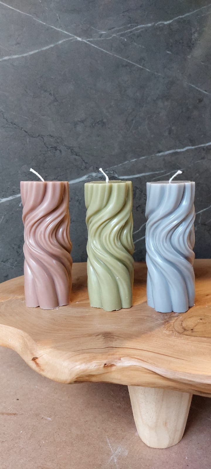 Su diseño curvo evoca movimiento, calma y armonía, convirtiéndola en una pieza decorativa única incluso antes de encenderla. Hecha a mano con cera de soja, en tonos suaves y neutros que combinan con cualquier estilo.