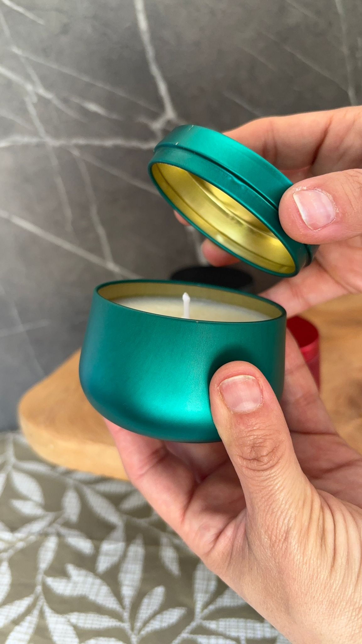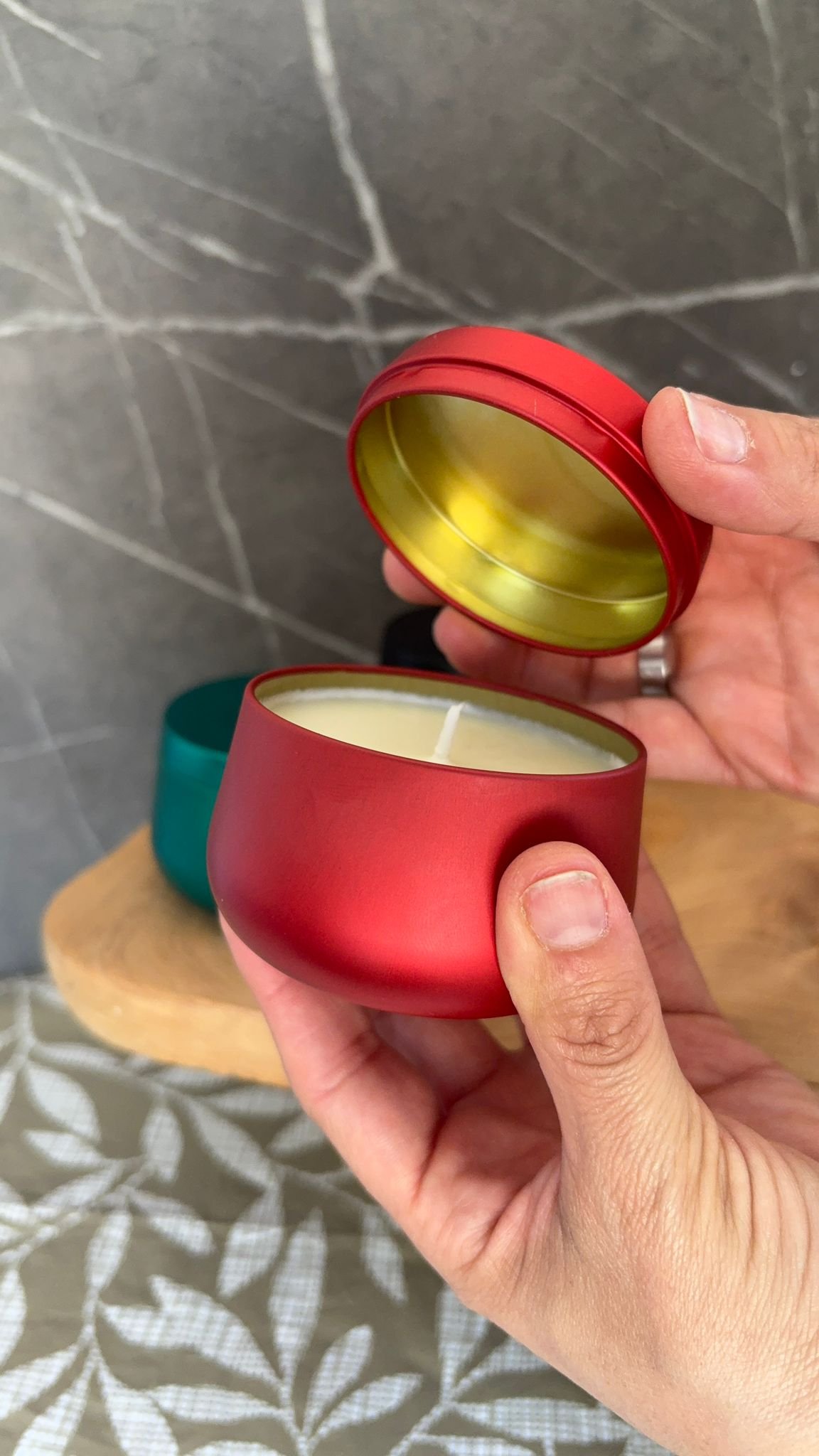 Modernas, vibrantes y llenas de personalidad. Nuestras velas en latas metalizadas —en tonos negro, verde y rojo— combinan diseño y aroma para crear una experiencia sensorial única. Hechas con cera de soja natural y perfumes cuidadosamente seleccionados, iluminan cualquier espacio con estilo y calidez. Ideales para regalar o sumar un toque de color y energía a tu rincón favorito.