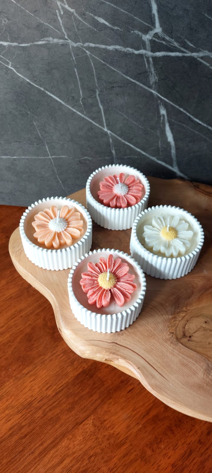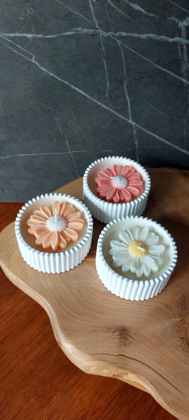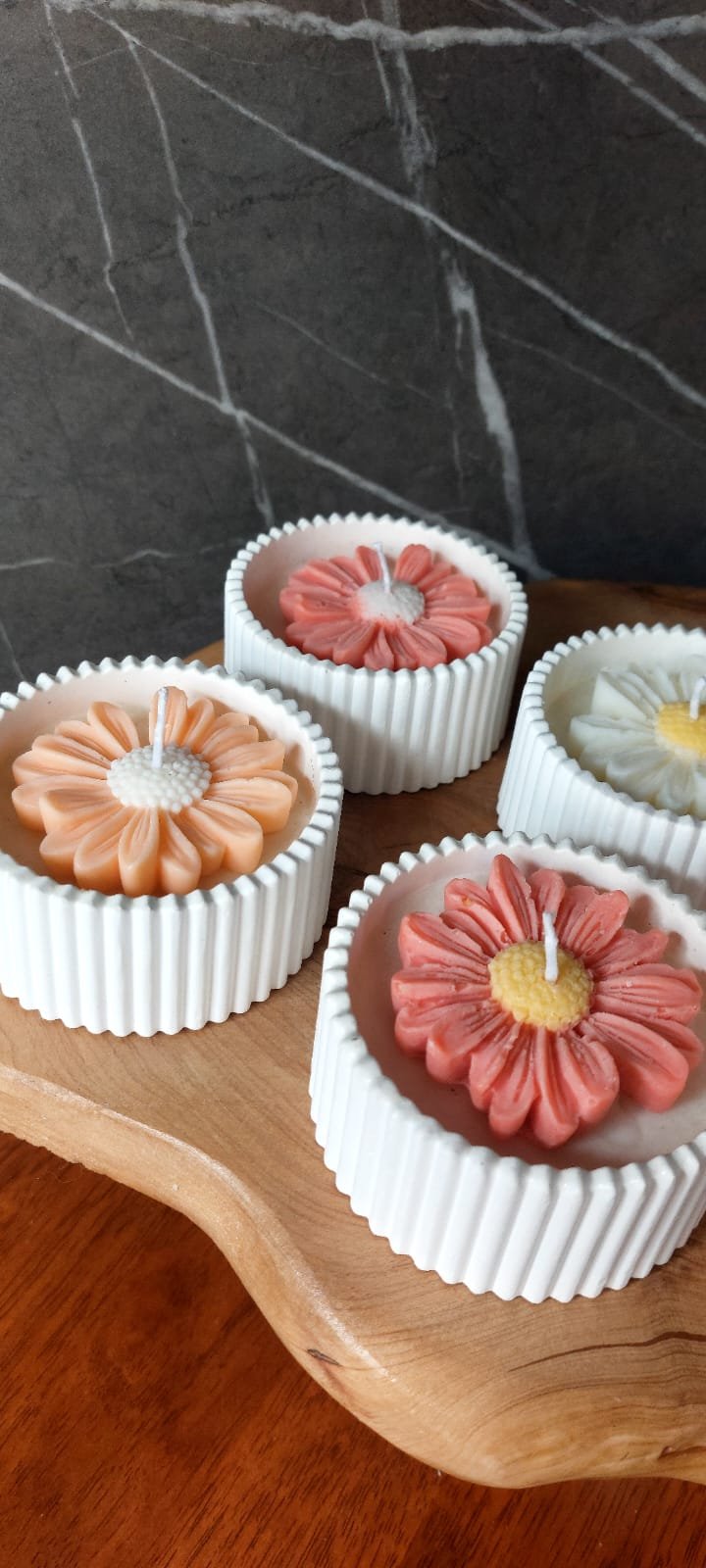 Nuestra vela KIRI es una pieza decorativa y sensorial única. Hecha a mano con cera de soja, combina el diseño elegante de una flor tallada en detalle con un recipiente de yeso texturado que aporta estilo y calidez a cualquier rincón.
