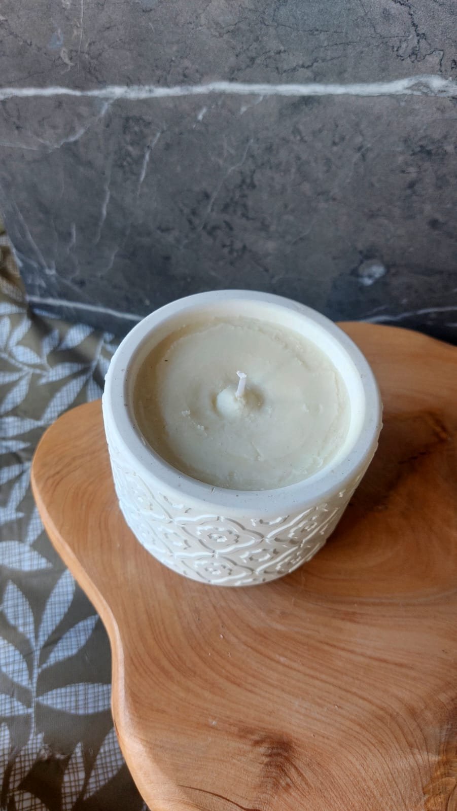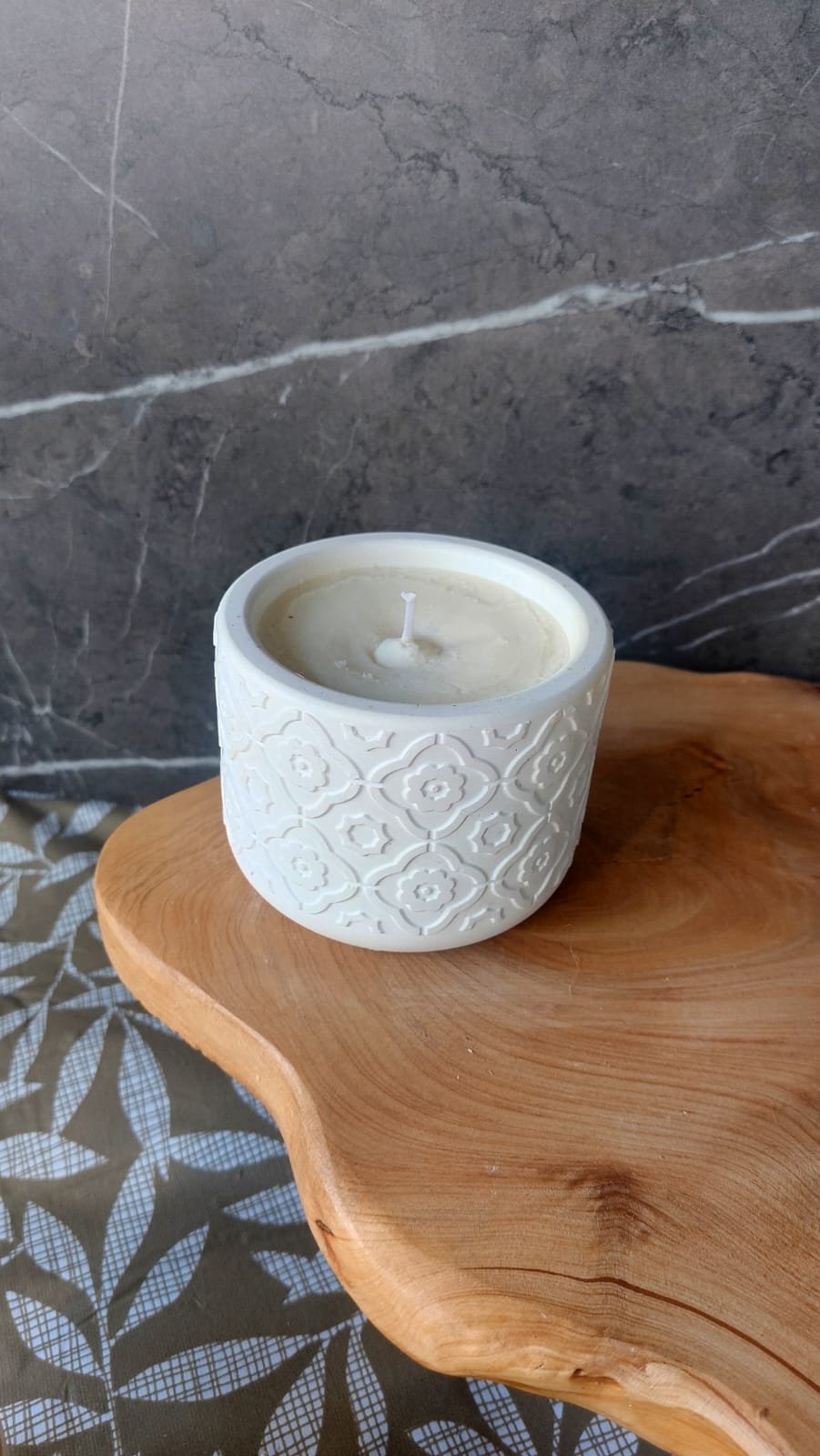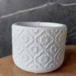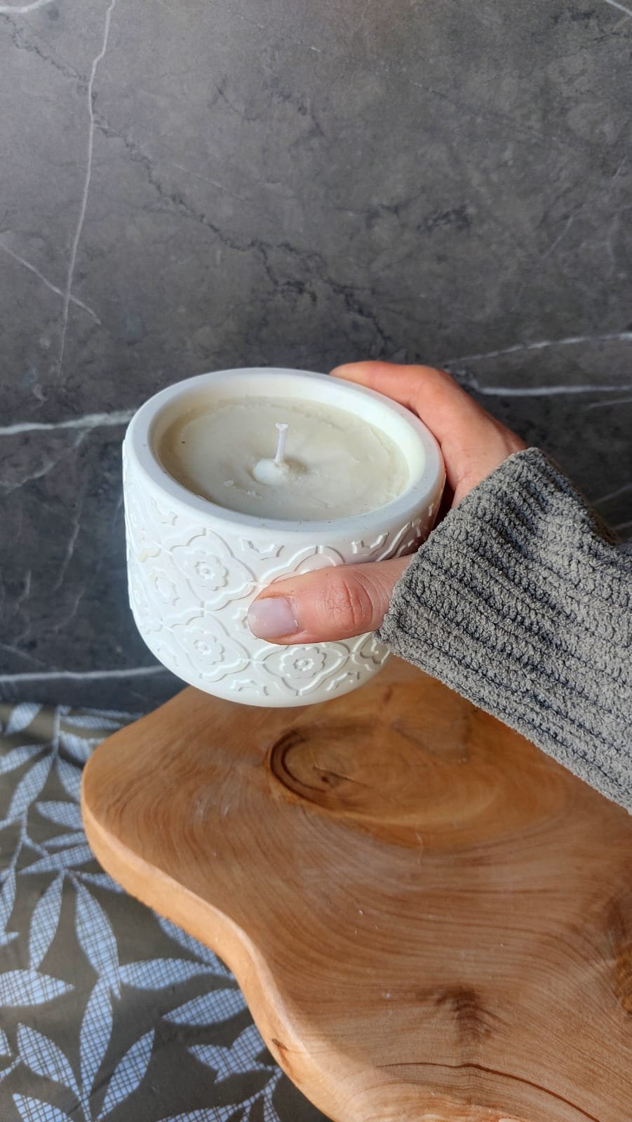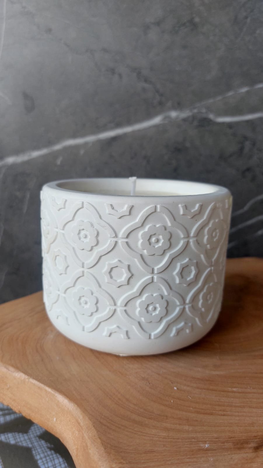 Una pieza que combina diseño artesanal y calidez. La vela Queta viene en un vaso de yeso con relieve floral geométrico, que aporta textura y personalidad a cualquier rincón. Su estilo neutro y elegante la convierte en un detalle perfecto para regalar o decorar tu hogar. Hecha con cera de soja y fragancias que invitan a relajarte, es una vela que enciende los sentidos y embellece el ambiente incluso cuando está apagada.