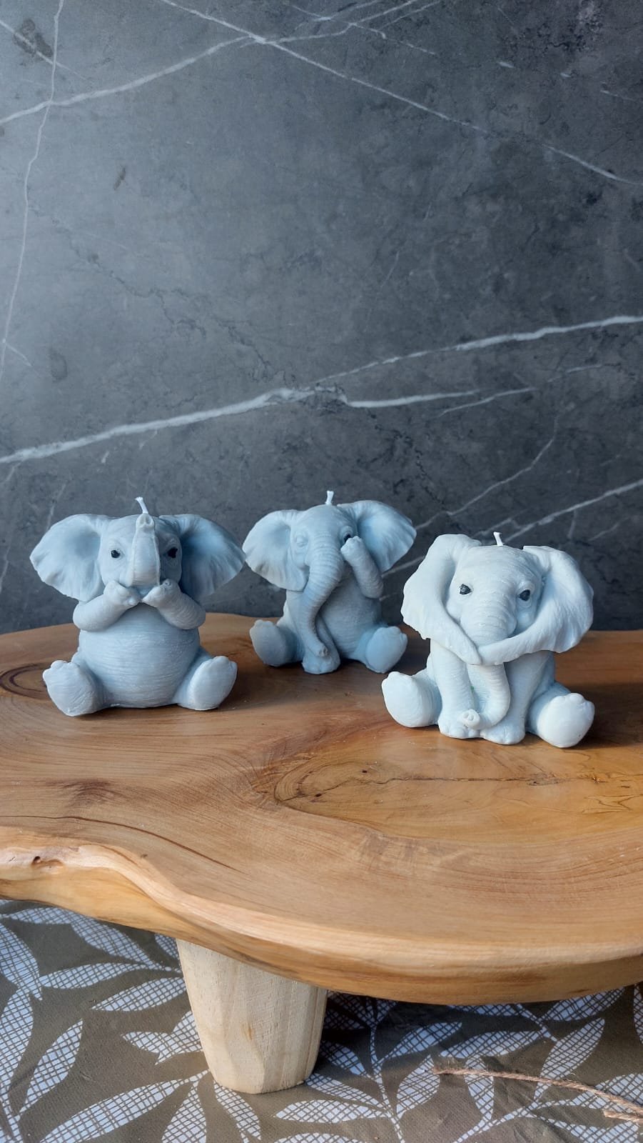 Inspiradas en el antiguo proverbio oriental, estas velas representan a tres elefantes que, en lugar de monos, toman el rol de sabios guardianes: uno se cubre los ojos, otro los oídos y el tercero la boca. Juntos simbolizan la intención de vivir con conciencia, evitando el mal en pensamientos, palabras y acciones.