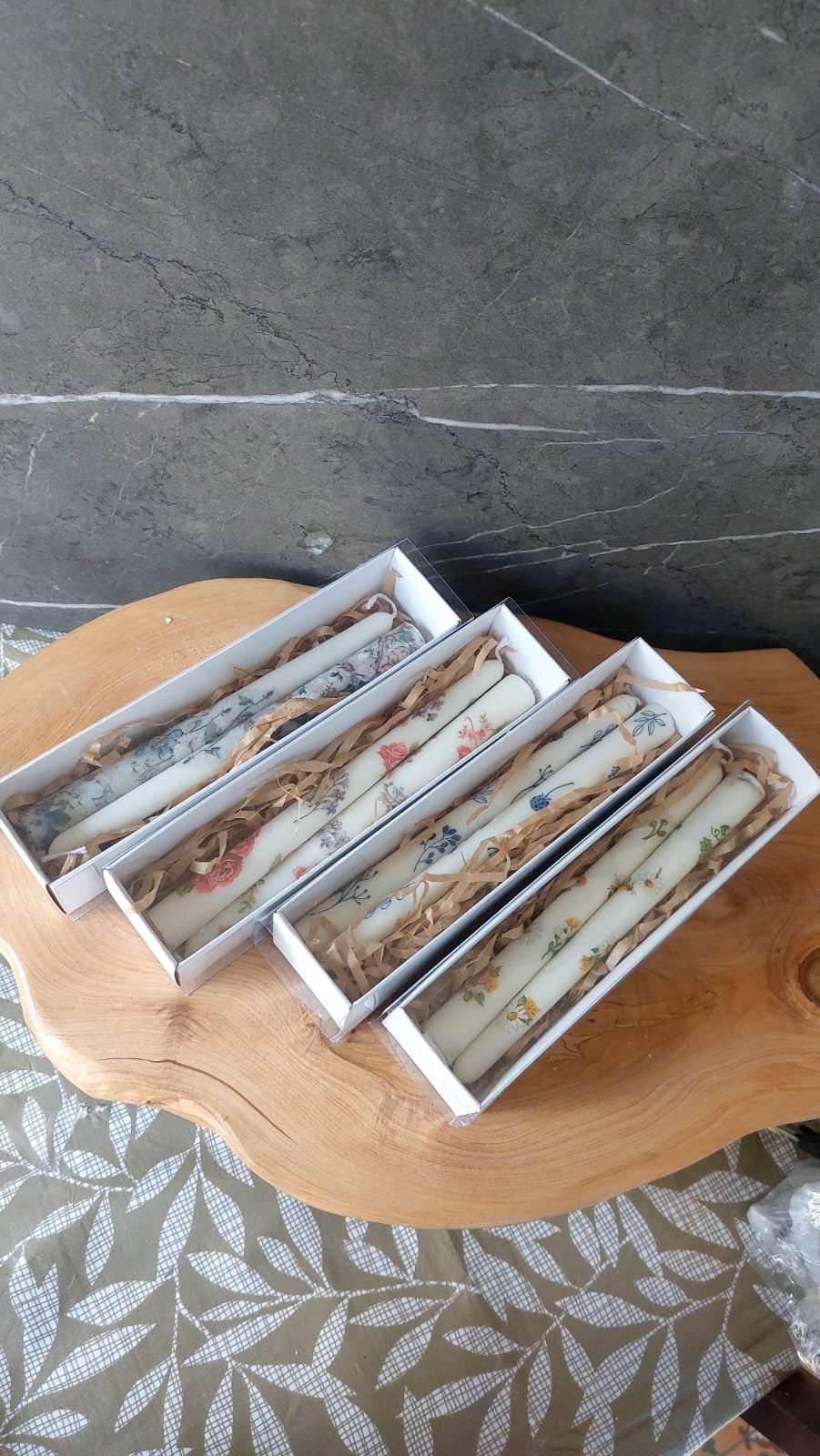 Hechas a mano con cera vegetal, nuestras velas largas decoradas son una opción delicada y original para ambientar o regalar. Cada una está ilustrada con diseños florales únicos y perfumada con aroma a flor de loto: suave y fresco. Ideales para decorar mesas, rincones especiales o como detalle en eventos.